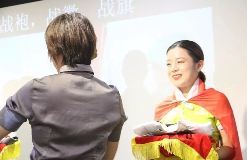 儀式上,行政部Sophie總裁上臺(tái)為我們的新家人,授戰(zhàn)袍、戰(zhàn)徽、戰(zhàn)旗,并致歡迎詞。恰逢兒童節(jié),祝愿所有新家人都能夠像孩子一樣,永遠(yuǎn)帶著一顆初心,堅(jiān)持并堅(jiān)定地往前走,而盛世,也將陪伴著每一位家人成長、成材!
