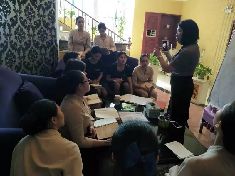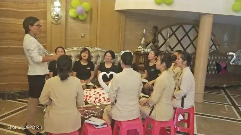 大會上,在授課過程中插入了很多交流互動的環節,大家在認真聽課的同時,積極參與互動,全場氛圍積極歡快。相信東莞百分完美的家人能夠在歡快的學習狀態下,吸收更多的知識,并更加完善專業手法,帶給客戶更加尊貴的體驗!