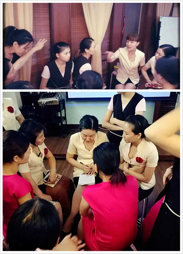 盛世精英們?yōu)閷氊悅儌魇谛袠I(yè)經(jīng)驗(yàn),講解頸部項(xiàng)目?jī)?yōu)勢(shì)。大家都非常認(rèn)真聽講,吸取經(jīng)驗(yàn)知識(shí)。